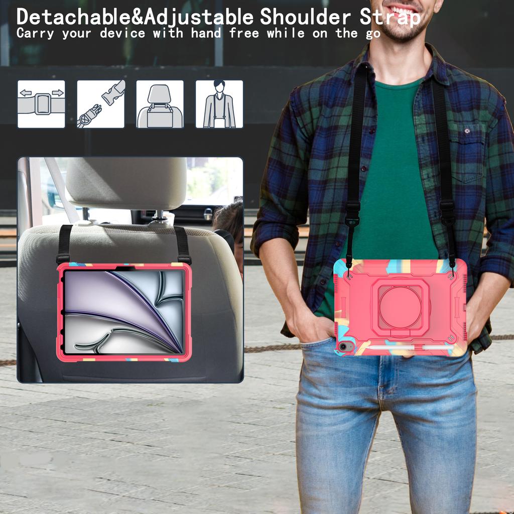 Для iPad Эйр 11 (2025)/(2024) Чехол с плечевым ремнем, ПК+Силикон, Ручка для держания, Подставка, Чехол для планшета