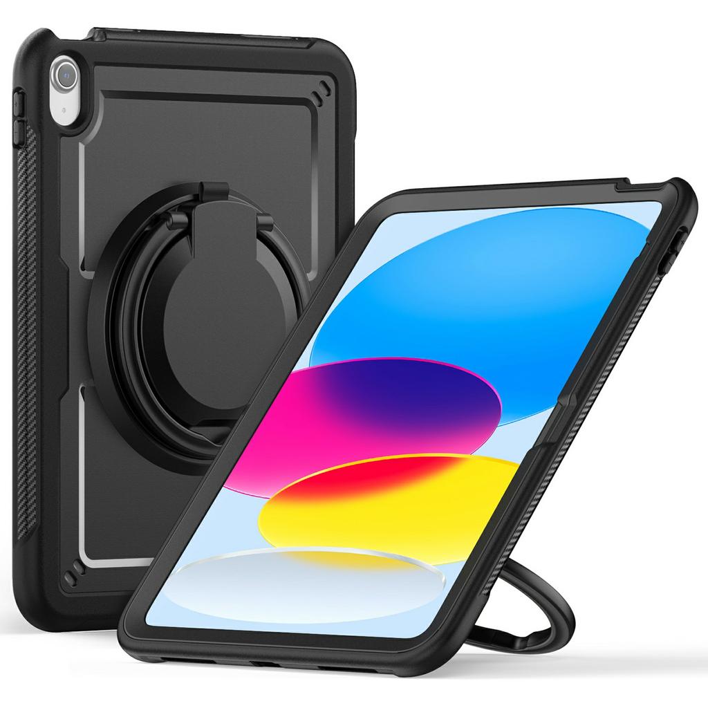 For iPad (2025)/10.9 (2022) Case PC+TPU Kickstand Tablet Cover with Pencil Holder,Shoulder Strap
