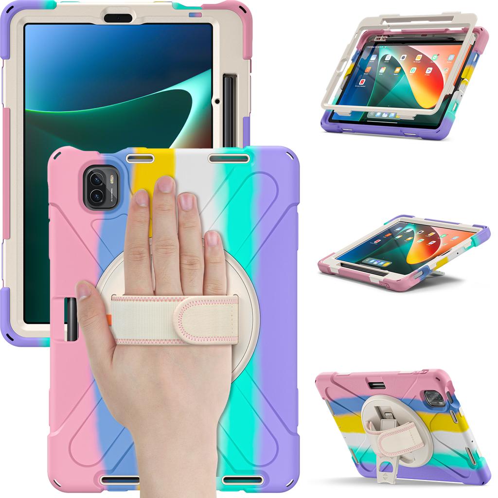 Чехол для Xiaomi Pad 5/Pad 5 Pro с вращающейся подставкой, из ПК+силикона, с ручным ремешком, крышка для планшета
