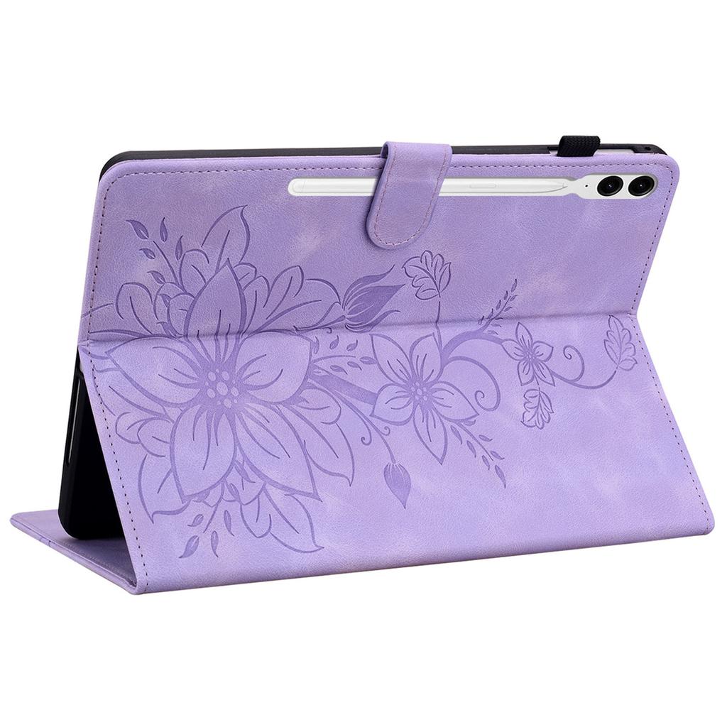 Для Samsung Galaxy Tab S10+/S9+/S9 FE+ Чехол с отделениями для карт, тиснение лилии, обложка для планшета из ПУ кожи