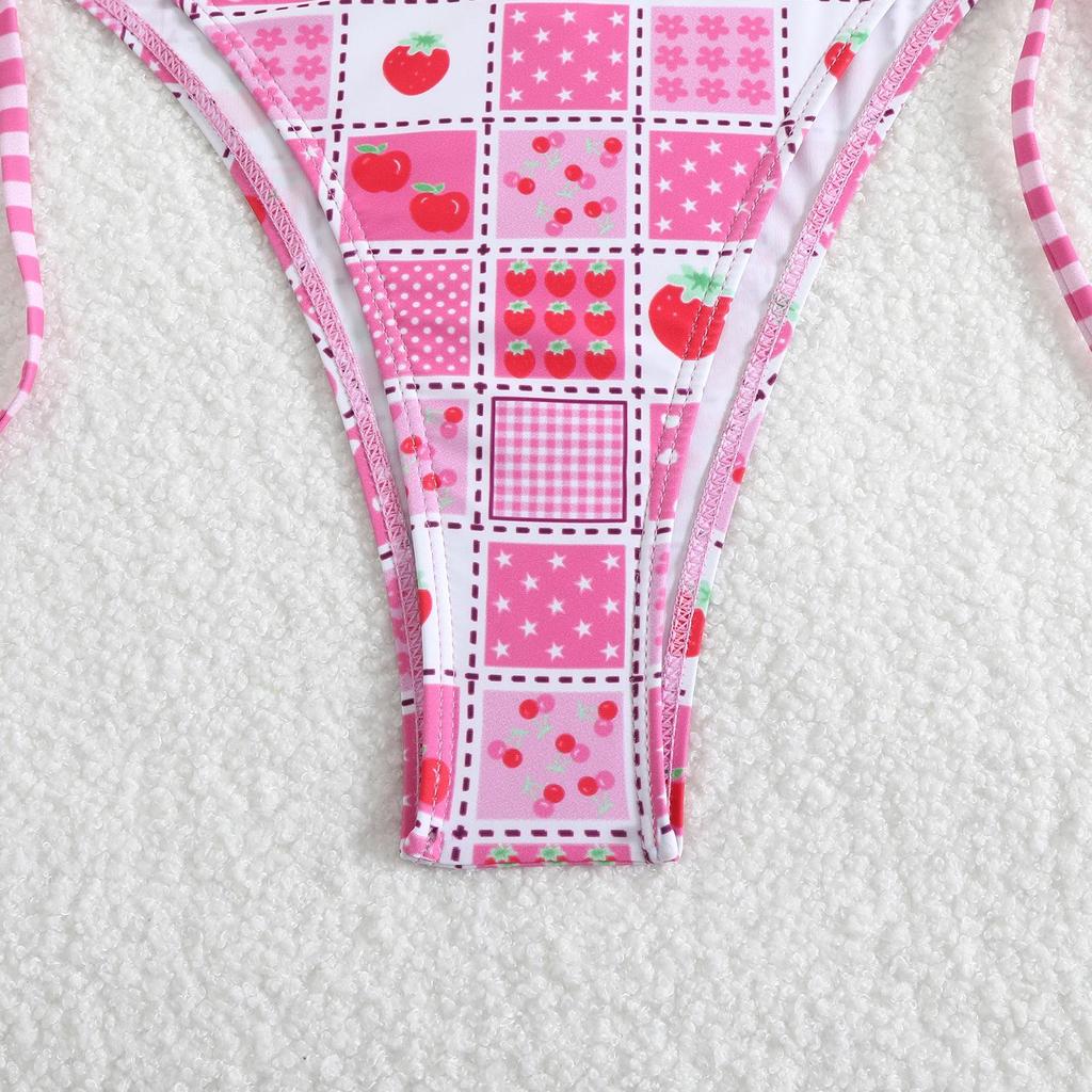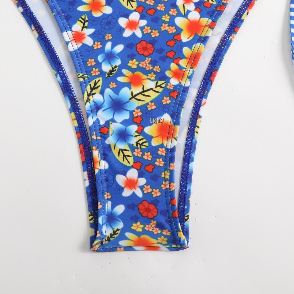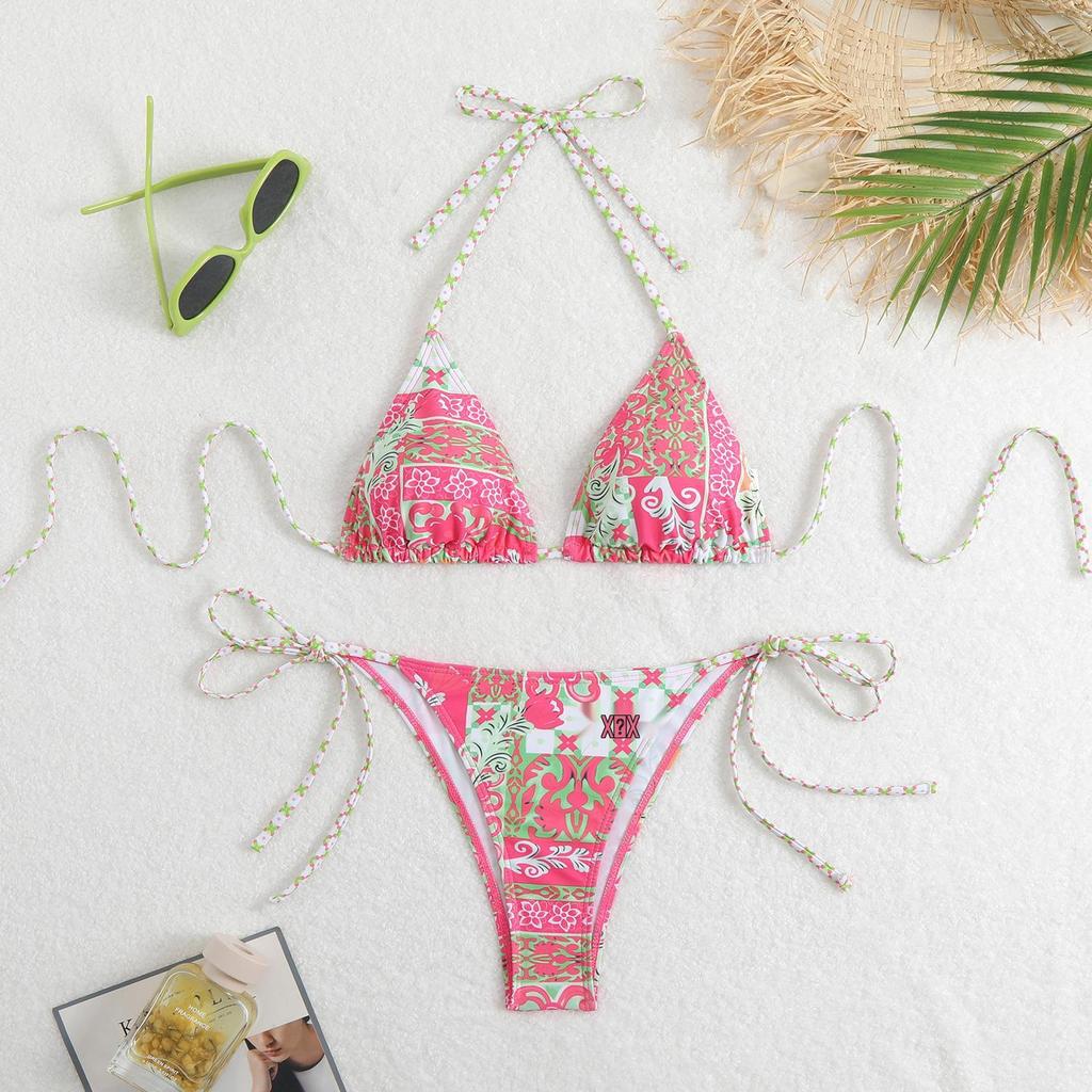 Новый купальник бикини 2025 года с многоцветным принтом, открытой спиной, шнуровкой, сексуальным разрезом для женщин