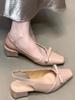 Нежные босоножки с квадратным носком и бантом, женские летние, для улицы, пустые, на низком коротком каблуке, на толстом каблуке