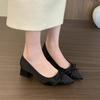 Темпераментные атласные туфли-лодочки с острым носком женские весенне-осенние милые с бантом с открытым верхом офисные туфли на высоком каблуке