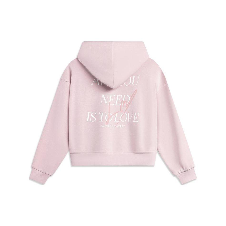 Li Ning Серия Спортивный Стиль Принт Буква Толстовка Пуловер с Капюшоном Длинный Рукав Женская толстовка Нежно-розовый AWDU782-3