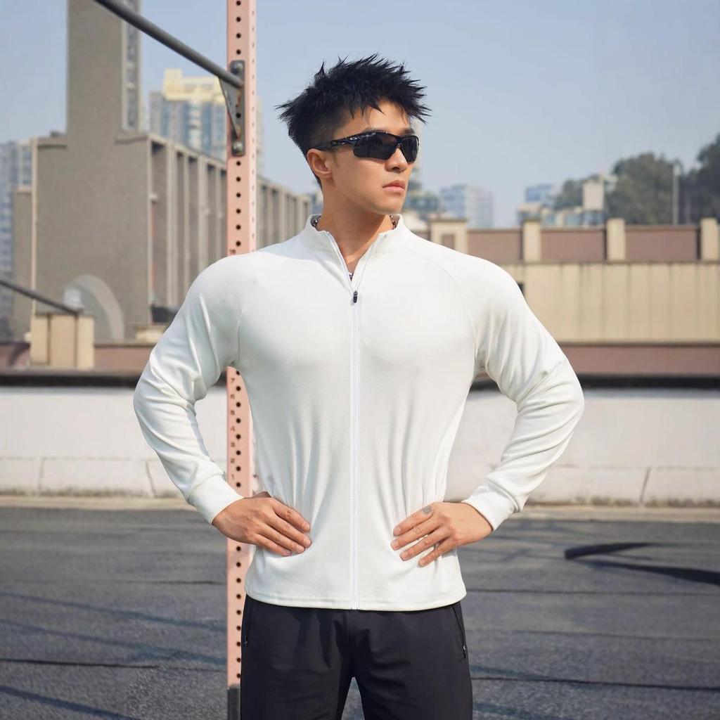 Мужская повседневная велюровая футболка с длинным рукавом для тренировки мышц - эластичный воротник-стойка на молнии