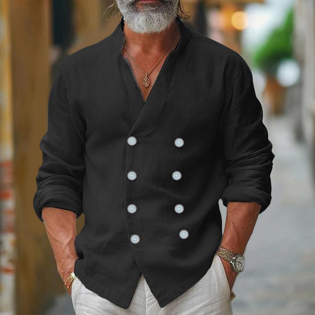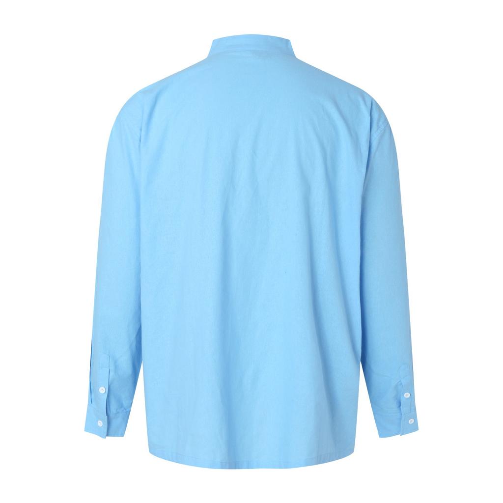 Мужская однобортная рубашка с воротником-стойкой, однотонная, с длинным рукавом, мужская, с карманом, обычного кроя, на пуговицах, рабочая