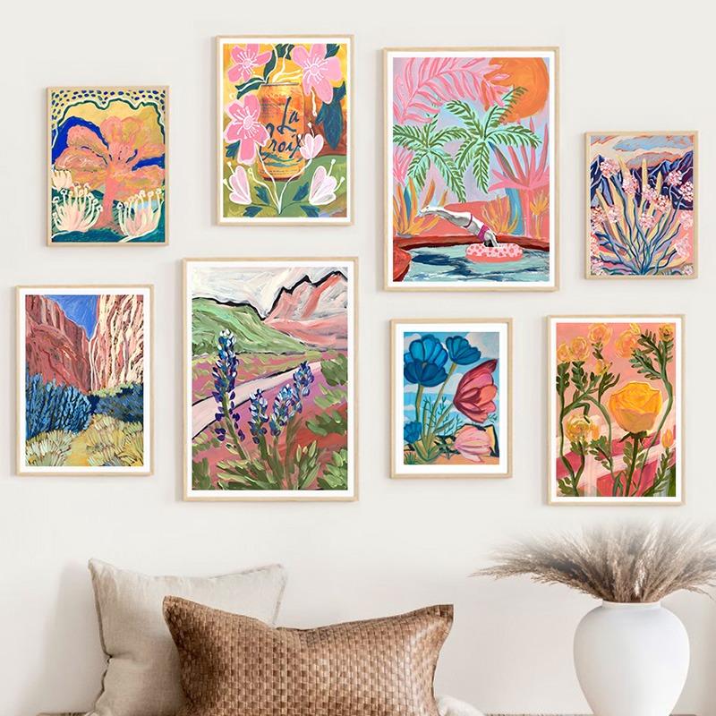 Ретро Горные Цветы Абстрактная Галерея Красочные Постеры И Принты Настенное Искусство Холст Масляная Живопись Картины Для Декора Гостиной