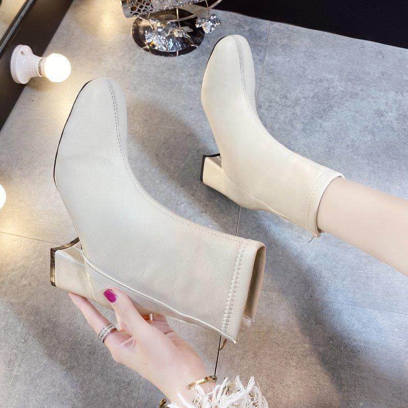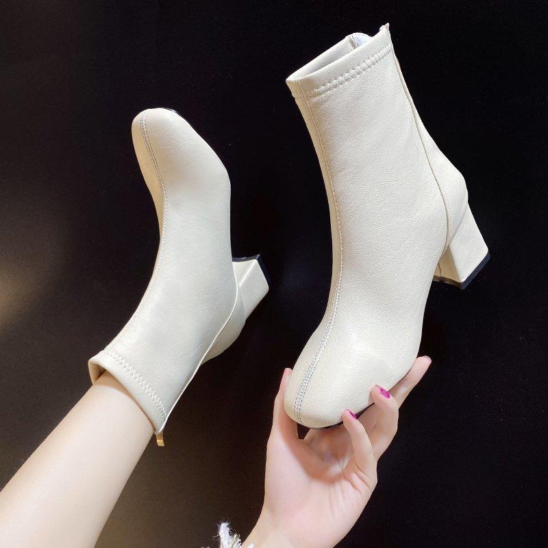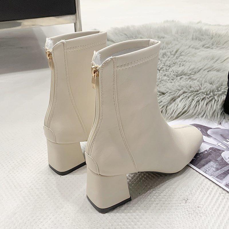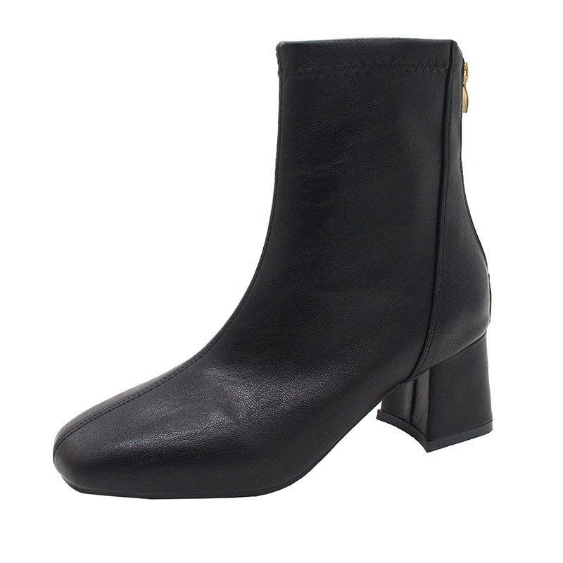 Женские ботинки Мартин весна и осень новые в британском стиле на среднем каблуке женские ботинки модные с квадратным носком на задней молнии средней длины тонкие ботинки