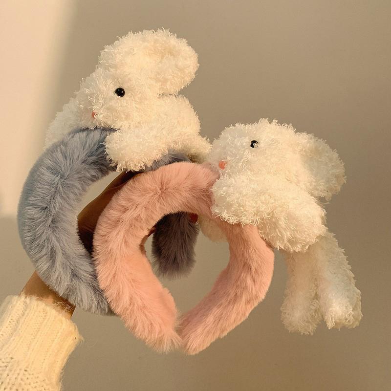 Милый плюшевый ободок для волос с изображением кролика и медведя для девочек, женский мультяшный широкий плюшевый ободок для волос, милая повязка на голову для мытья лица, повседневные аксессуары для волос