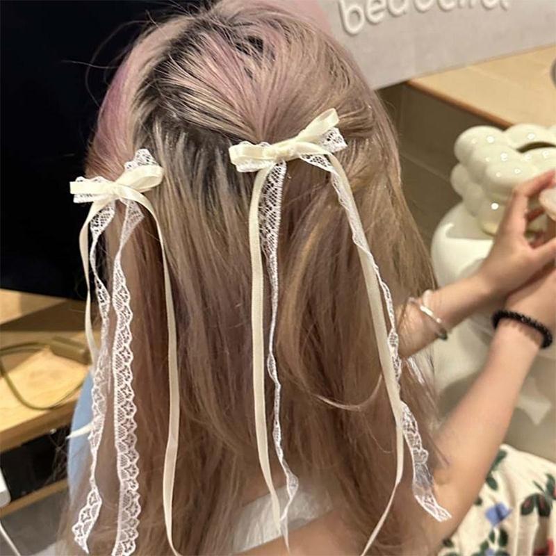 Милые длинные шпильки для волос французская Лолита кружевная лента кисточка бант заколка для волос для женщин девушки заколки для вечеринок головные уборы аксессуары