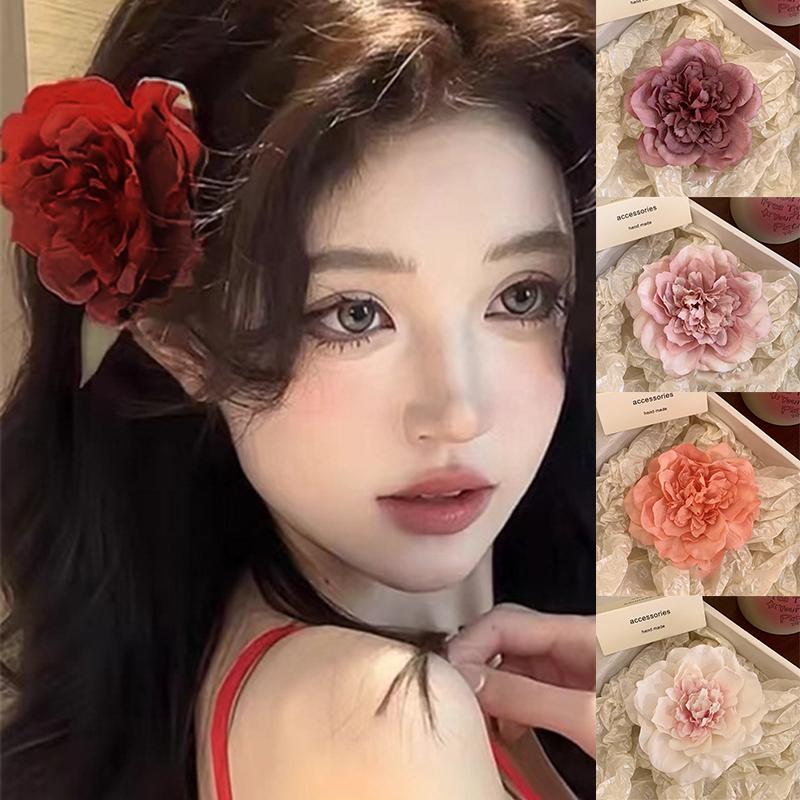 Французская ретро заколка для волос с пионами, романтические цветы, боковая заколка, заколка-уточка, шпилька для волос, женский головной убор, заколка-автомат, свадебный головной убор