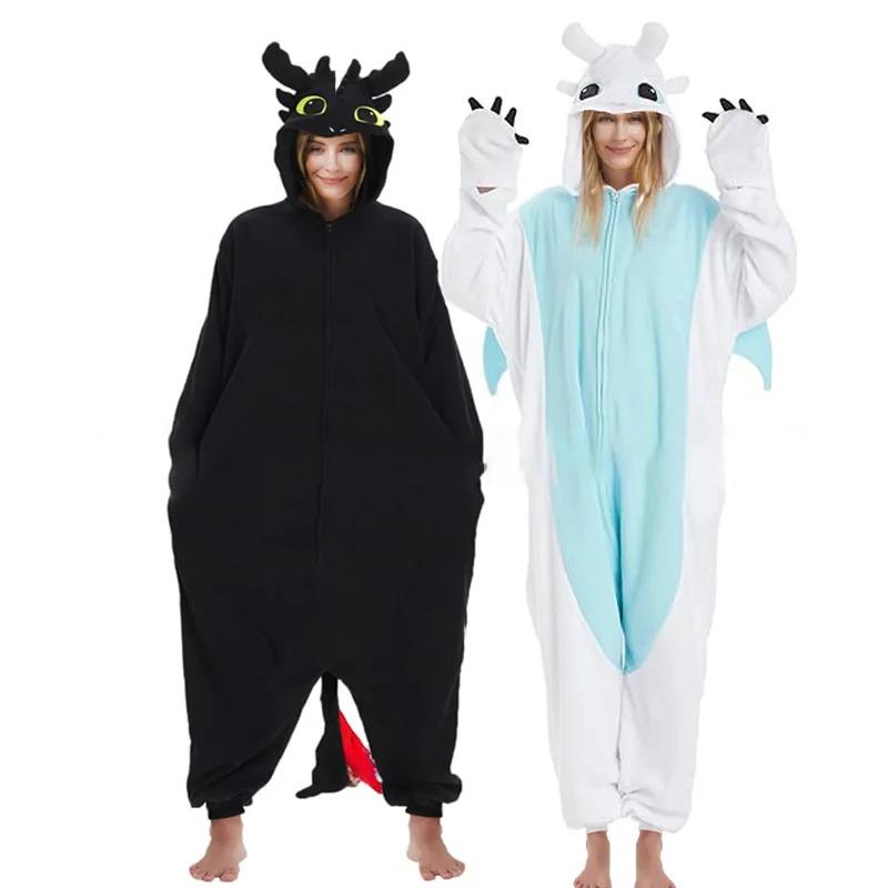 Беззубик Комбинезоны На Рождество Пижама Дракон Черный Белый Аниме Кигуруми Женская Цельная Одежда Мужской Милый Наряд Молния Комбинезон