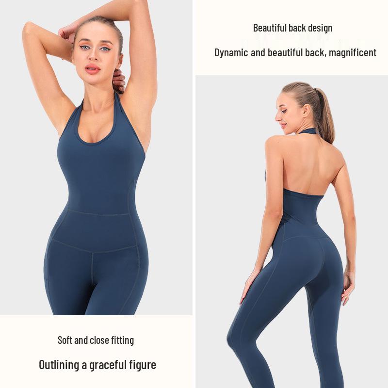 Новый женский облегающий быстросохнущий комбинезон для йоги - Спортивный фитнес-комплект для весны/лета с влагоотводящим эффектом