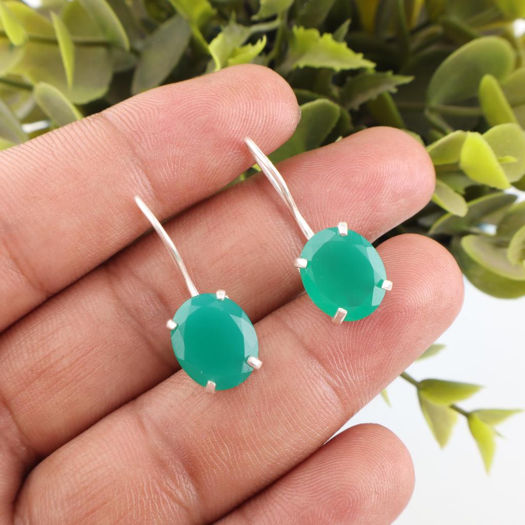 Серьги из зеленого оникса 925 пробы из цельного стерлингового серебра, Ювелирные изделия с драгоценными камнями ручной работы, Подарки для жены Новые серьги