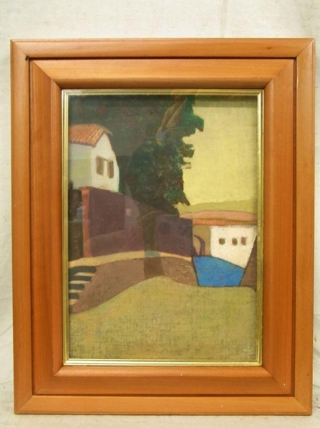 [USED] Hand-painted house landscape, oil painting, F4, framed, Takashi Tateyama