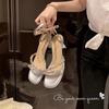 Су Иньинь Леденцовая Фея~ Летние Новые Однословные Сандалии Французские Стразы Открытый Носок Толстый Высокий Каблук Сандалии Женские