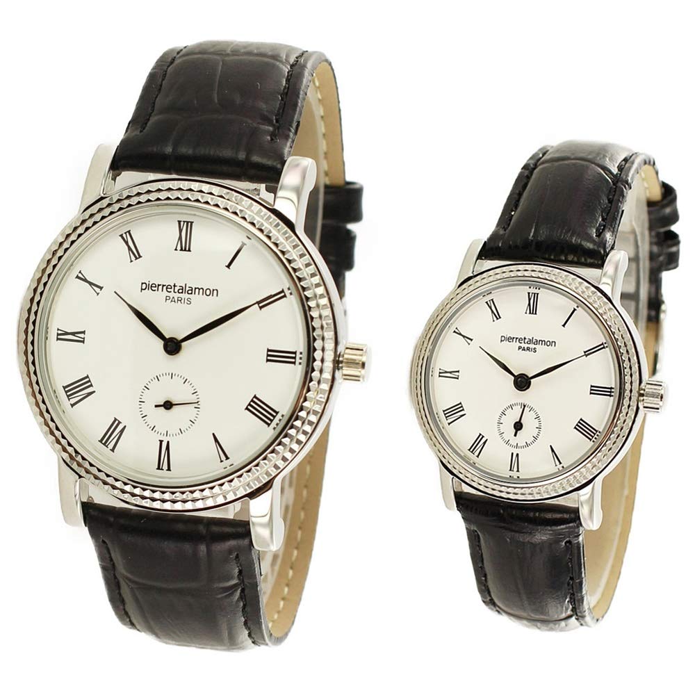 PIERRE TALAMON и Парные часы Малая секундная стрелка Римские цифры 38 мм 28 мм Черный ремешок из крокодиловой кожи Серебристые наручные часы [Пьер Таламон] Мужские Женские