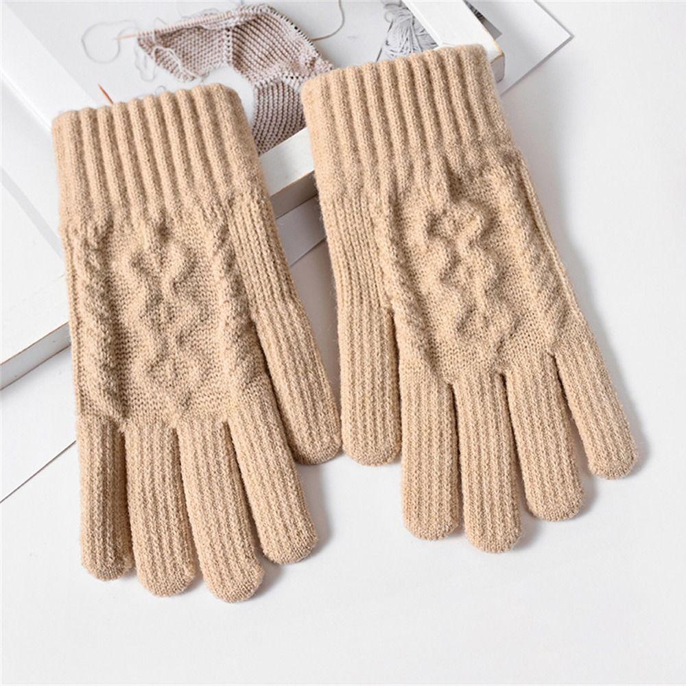 Вязаные варежки с сенсорным экраном, утепленные перчатки на все пальцы, повседневные теплые перчатки для женщин, девушек