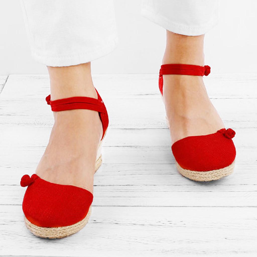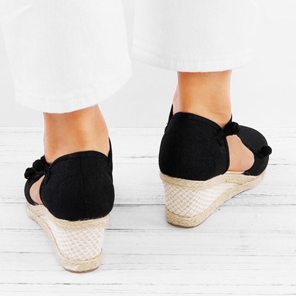 Женские повседневные сандалии на танкетке с круглым носком и льняной тканью в стиле ретро, обувь для одиночных игр