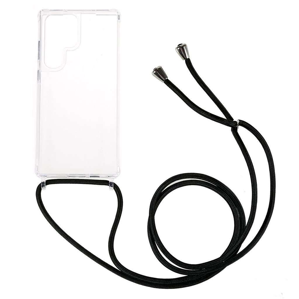 For Samsung Galaxy S23 Ultra TPU+Acrylic Phone Drop-proof Cover Clear Anti-scratch Case with Long Lanyard