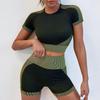 2025 Быстросохнущий Бесшовный Комплект из Двух Предметов для Йоги и Бега: Шорты с высокой талией и топ с коротким рукавом для женщин