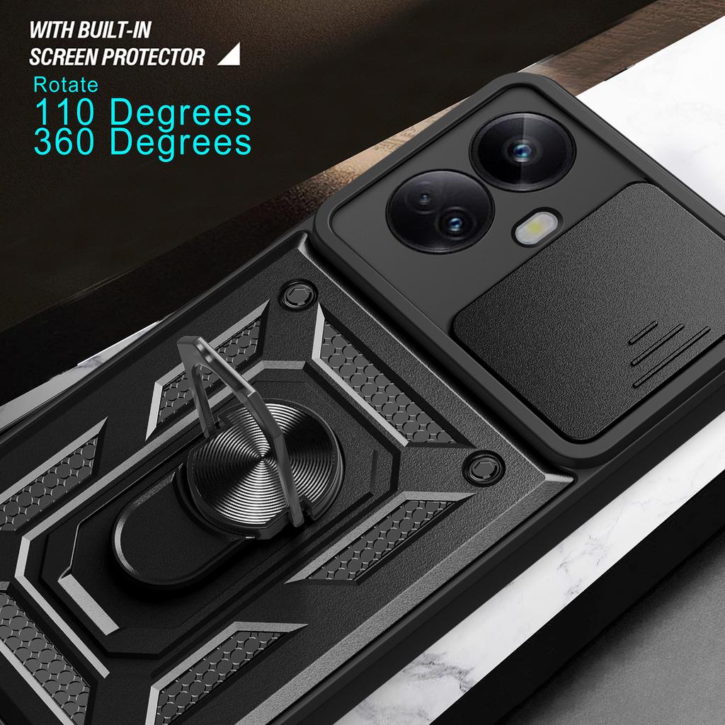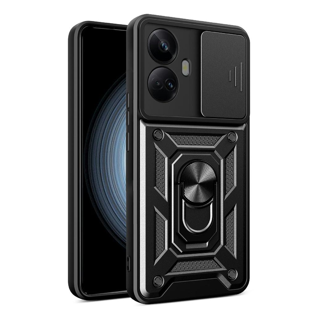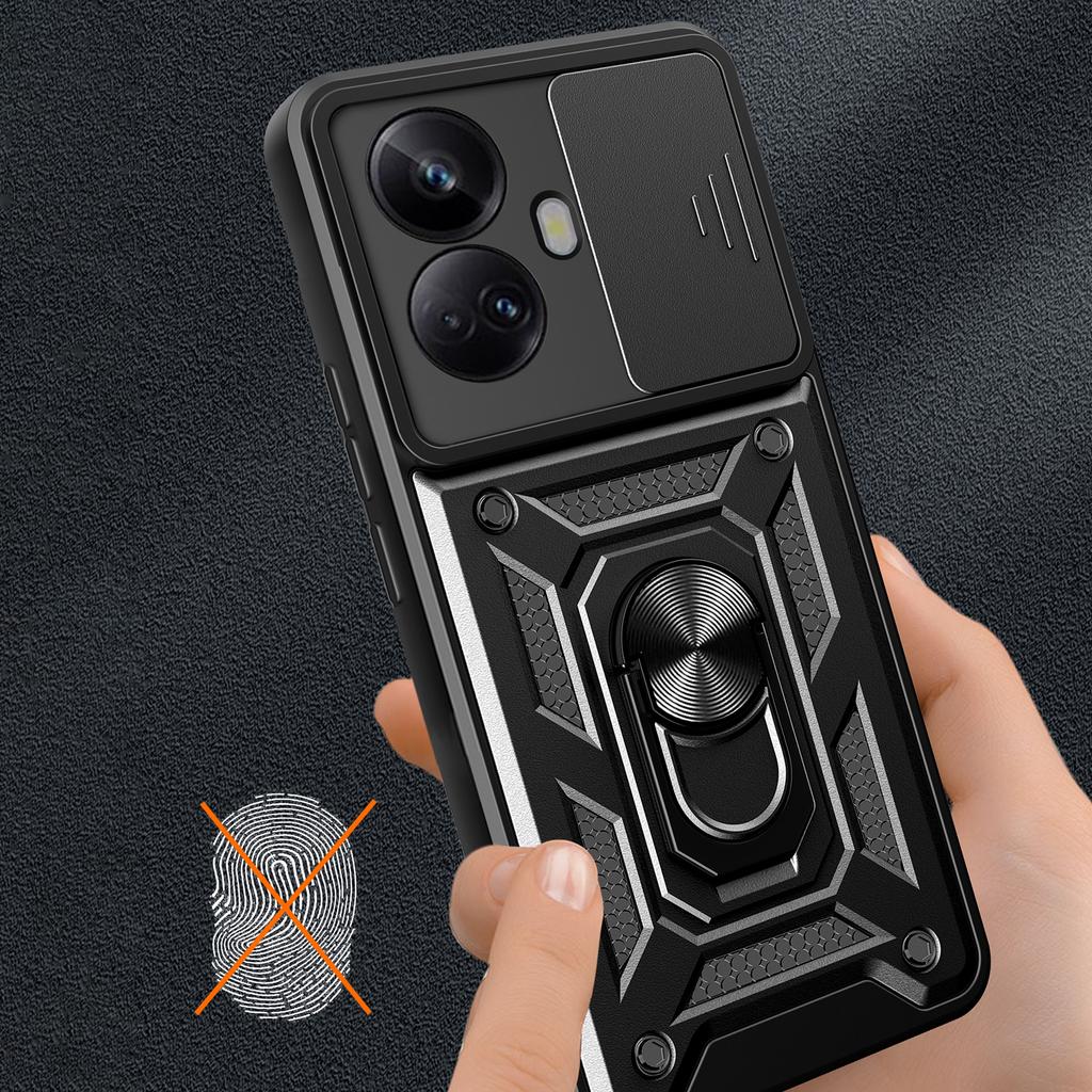 For Realme 10 Pro+ 5G Kickstand Phone Holder Sliding Camera Cover PC+TPU Phone Case