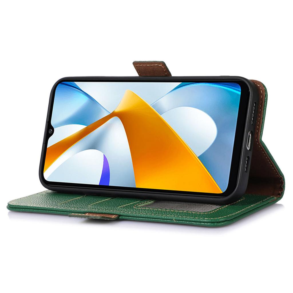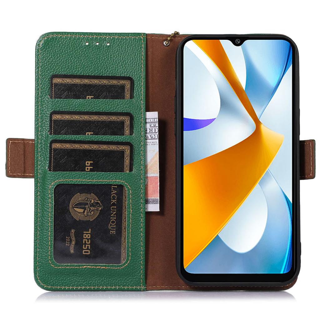 Для Xiaomi Poco C55 4G/Redmi 11A 4G/Redmi 12C 4G Чехол для телефона из натуральной кожи с RFID-блокировкой, кошелек, подставка для телефона, крышка