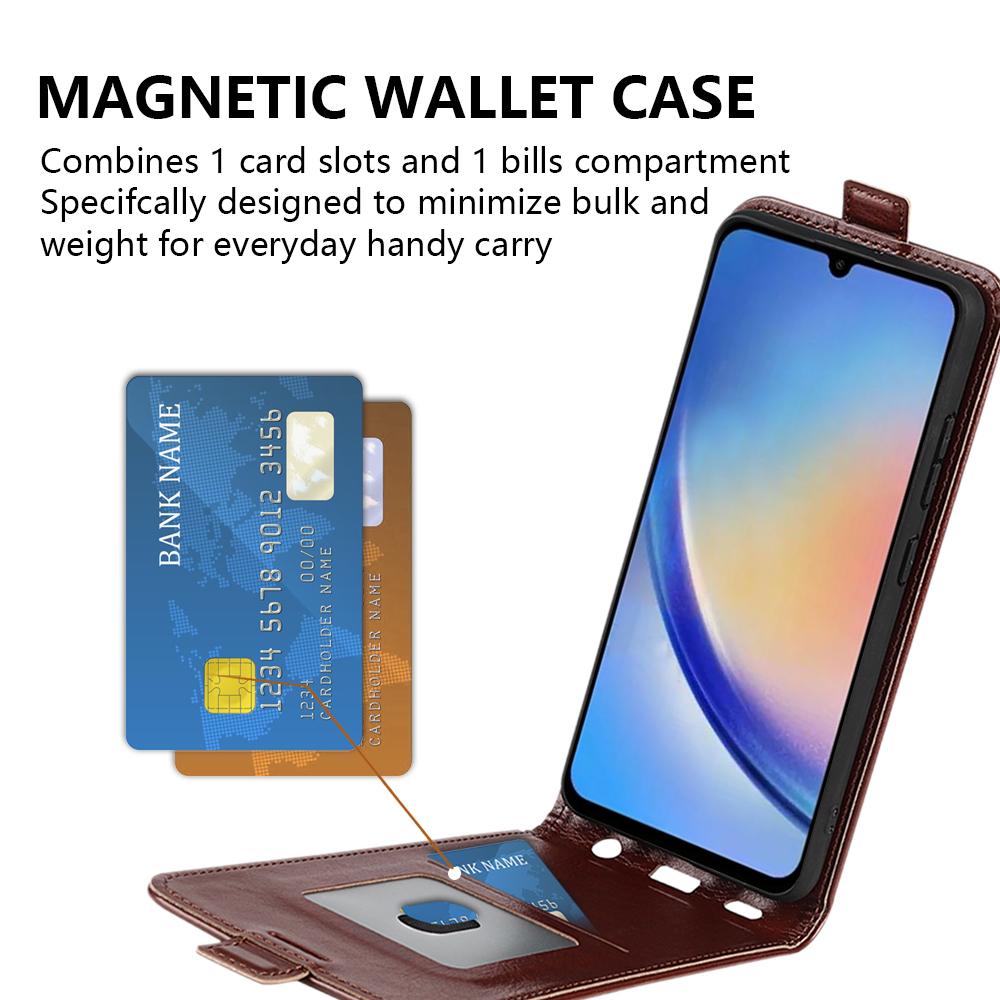 Чехол-книжка с вертикальным откидыванием для Samsung Galaxy A34 5G, кожаный чехол с текстурой Crazy Horse со слотом для карт