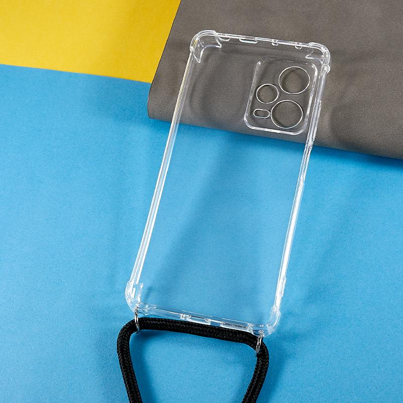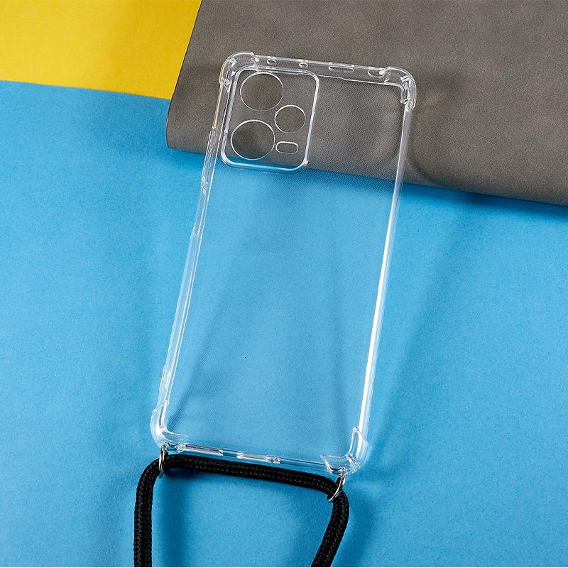 Чехол для телефона из ТПУ для Xiaomi Redmi Note 12 Pro + 5G, прозрачный чехол для телефона с усиленными углами и ремешком