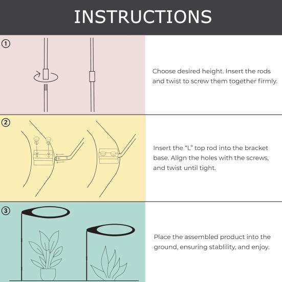 Регулируемая высота для универсальной защиты растений: Система из 3 оцинкованных стальных стержней позволяет легко регулировать высоту до 24 или 40 дюймов, обеспечивая оптимальное покрытие для растений различных размеров и типов.