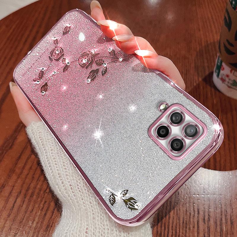KADEM For Samsung Galaxy A42 5G/M42 5G Gradient Glitter Powder TPU Cover Rhinestone Decor Flower Pattern Anti-drop Protective Case