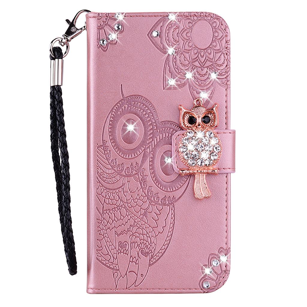 Для Samsung Galaxy A34 5G Стразы PU Кожа Подставка Кошелек Чехол для телефона Тисненый Сова Цветок Чехол для телефона