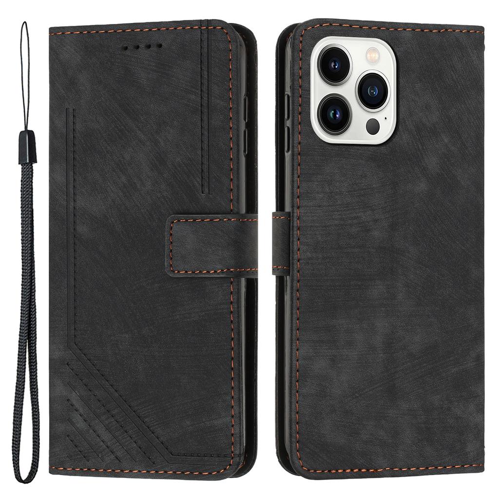 For iPhone 13 Pro Leather Stand Wallet Phone Case Skin-touch Lines Imprinted Phone Cover
