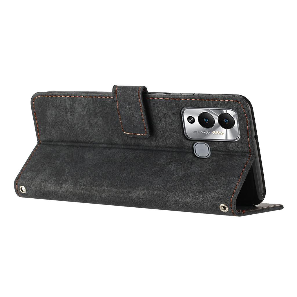 Для Infinix Hot 12 Play 4G Кожаный чехол-кошелек с текстурой кожи и тиснеными линиями, с подставкой