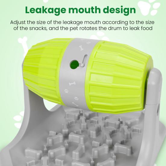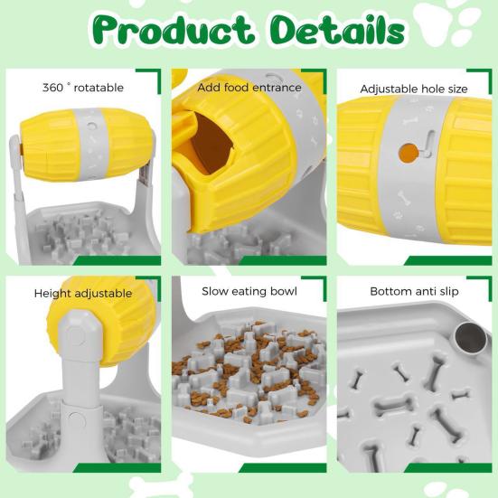 Регулируемое отверстие для выдачи корма: Отрегулируйте размер отверстия для выдачи корма, чтобы оно соответствовало различным размерам лакомств, позволяя питомцам взаимодействовать с кормушкой, поворачивая ролик для выдачи корма, что способствует умственной стимуляции и физической активности.