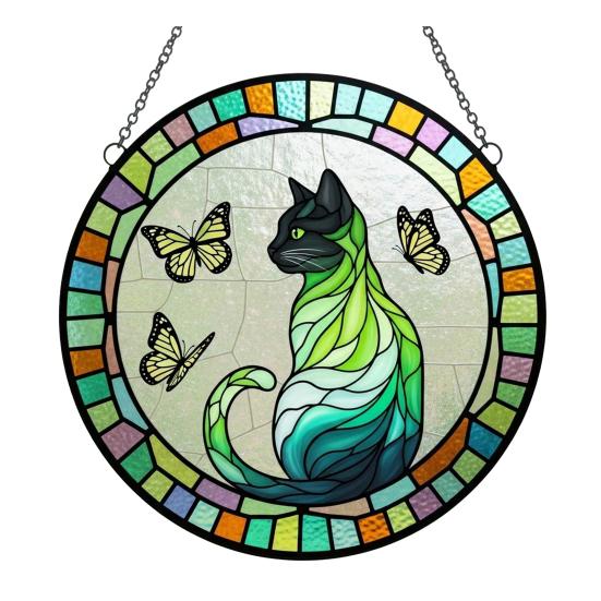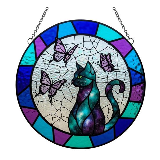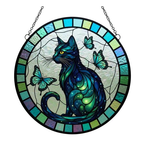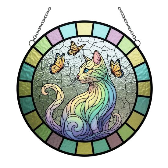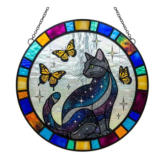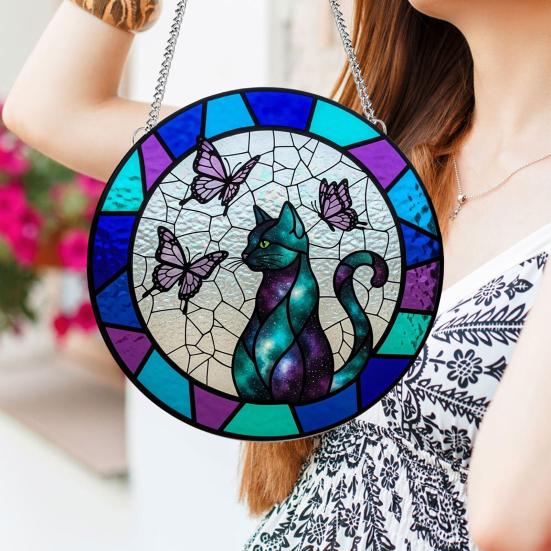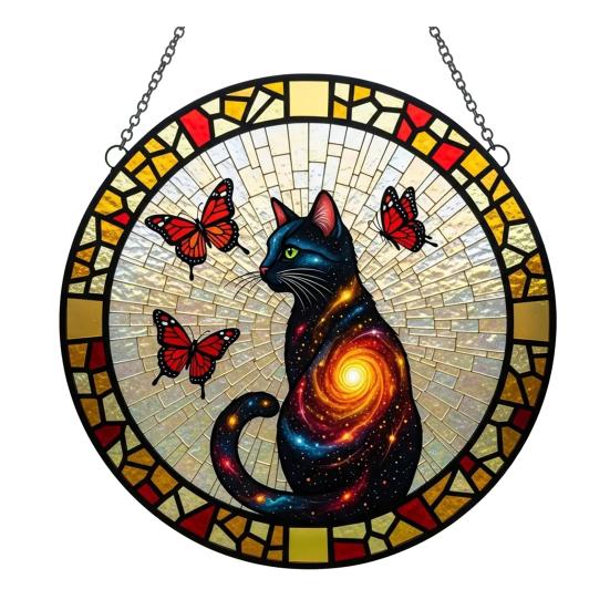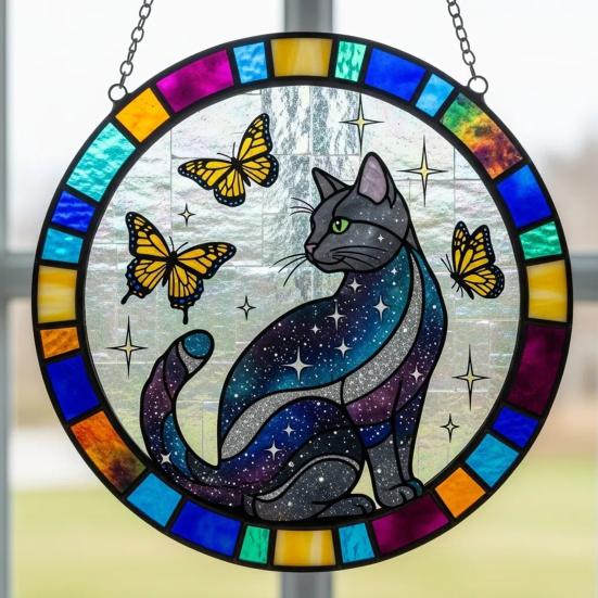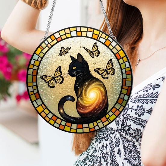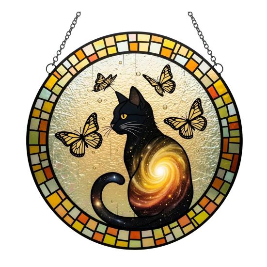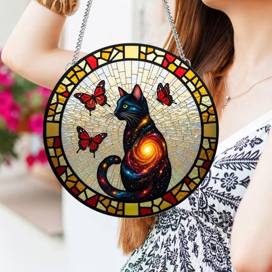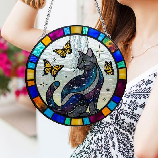 Украсьте свой дом этими изысканными подвесками-ловцами солнца, предназначенными для подвешивания на окна.. Изготовленные из акрила, они создают завораживающую игру красочных огней и теней, наполняя ваше пространство мечтательной и уютной атмосферой.. Каждая подвеска украшена очаровательным изображением кошки, украшенным причудливыми элементами, такими как бабочки, звезды и вселенские узоры, что добавляет нотку воображения и очарования.