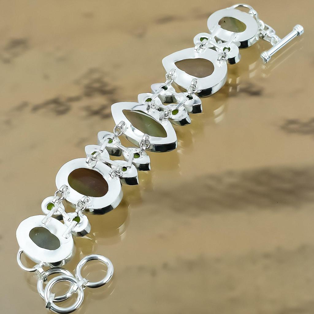 Подарок для нее Натуральный мультикамень флюорит Цепочка Регулируемый браслет Серебро 925 пробы