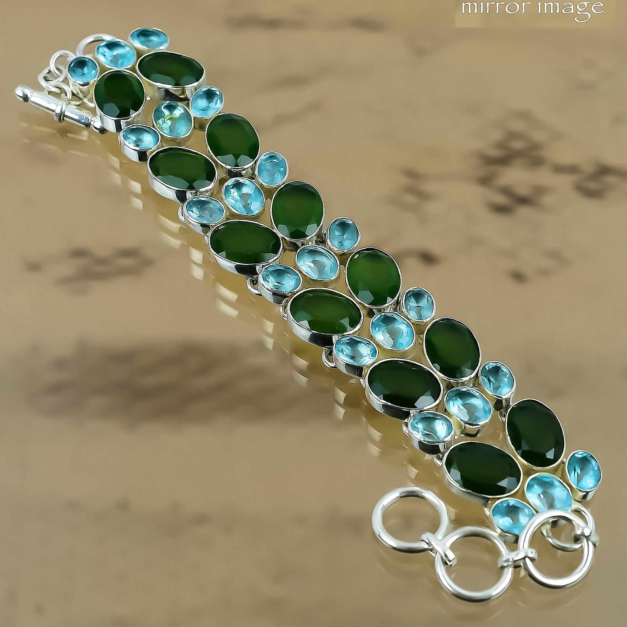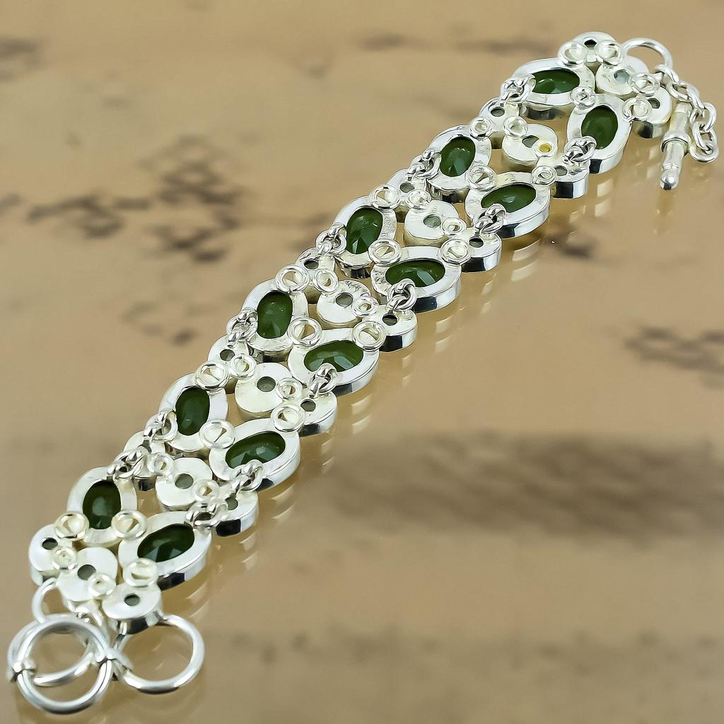 Свадебный подарок для нее Браслет-цепочка из серебра 925 пробы с натуральным зеленым жадеитом, регулируемый
