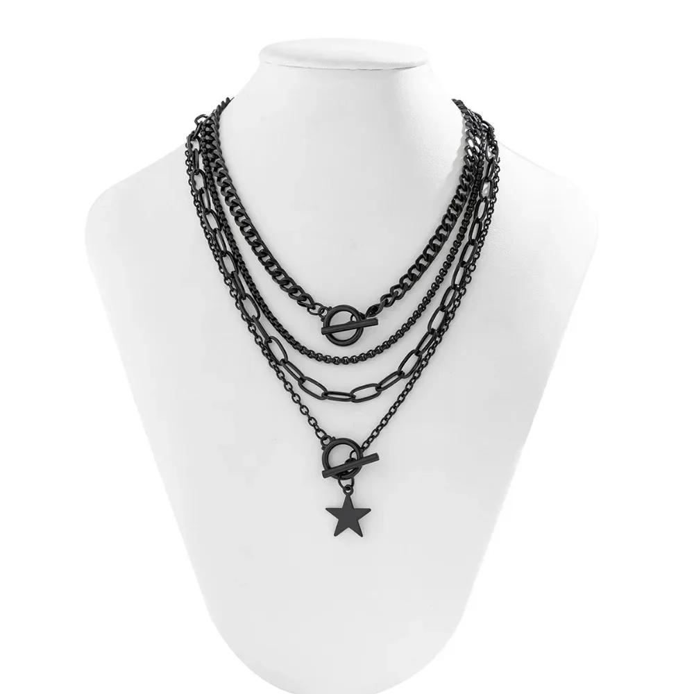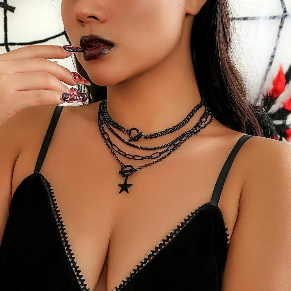 Винтажный панк-стиль Черное сердце любви Звезда Многослойный набор ожерелий с подвесками для женщин Личность Хип-хоп Рок Набор украшений Аксессуар