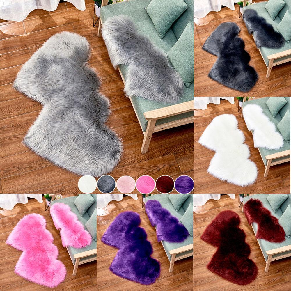 Double Heart Shape Faux Fur Sheepskin Rugs Floor Carpet Fluffy Soft Shaggy Area Rugs Throw Bedside Rugs Living Room Decor Mat
