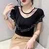 Новая Шикарная Летняя Элегантная Женская Футболка Одежда Сексуальная Роскошная Блестящая с Бриллиантами Топы с Короткими Рукавами Рюши Сетка Футболки Блузки — купить товар онлайн с бесплатной доставкой по всему миру!