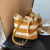 Новая сумка-тоут нишевый дизайн контрастный цвет полосатая вязаная сумка простая полая портативная сумка на плечо женская