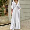 Летнее элегантное платье, женская мода, однотонный повседневный комбинезон с короткими рукавами и v-образным вырезом