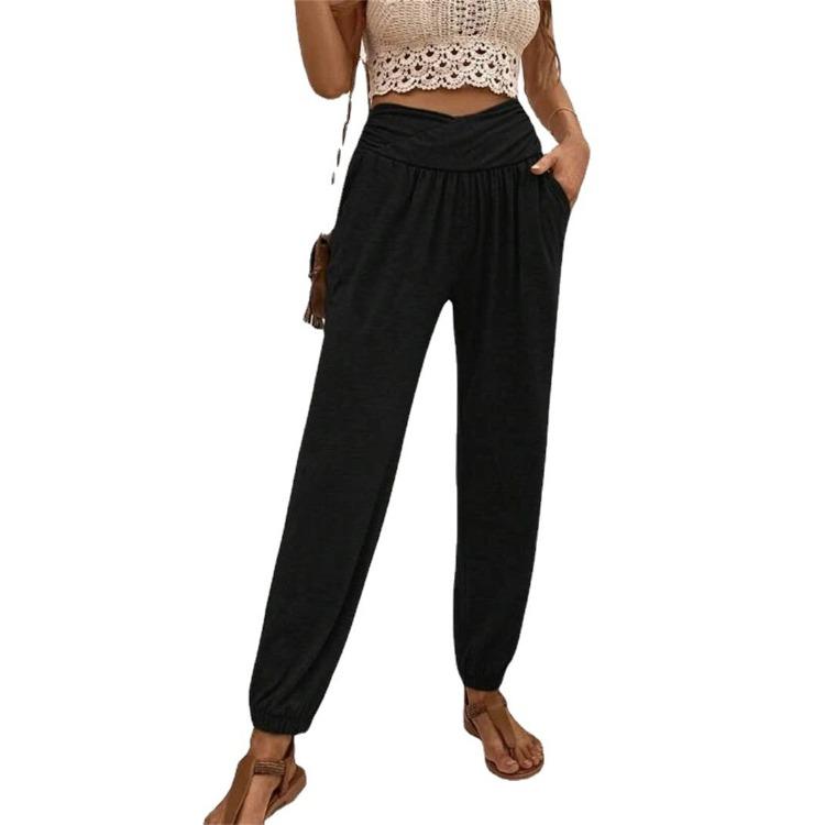 Летние женские домашние брюки, темпераментные повседневные свободные брюки с карманами и высокой талией
