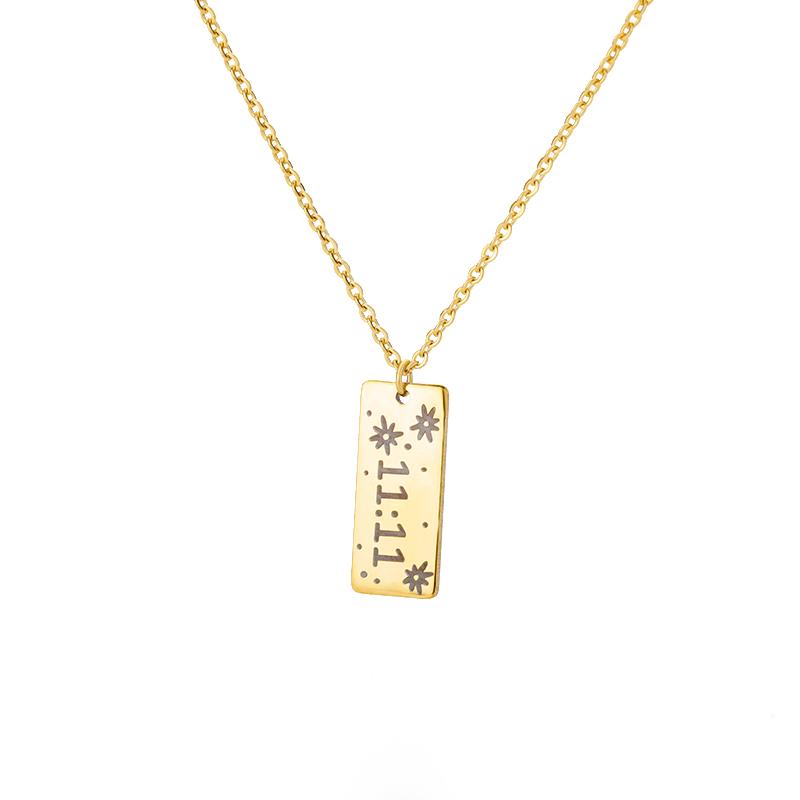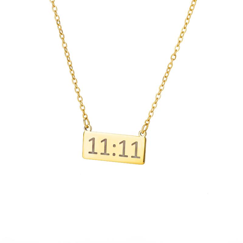 11:11 Прямоугольная подвеска-ожерелье для женщин из нержавеющей стали золотого цвета с цепочкой, чокер с счастливым ангельским числом 1111, ювелирные изделия, collares