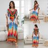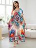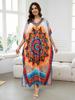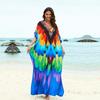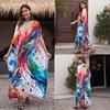 Свободный хлопковый халат большого размера с принтом - Пляжная накидка для женщин