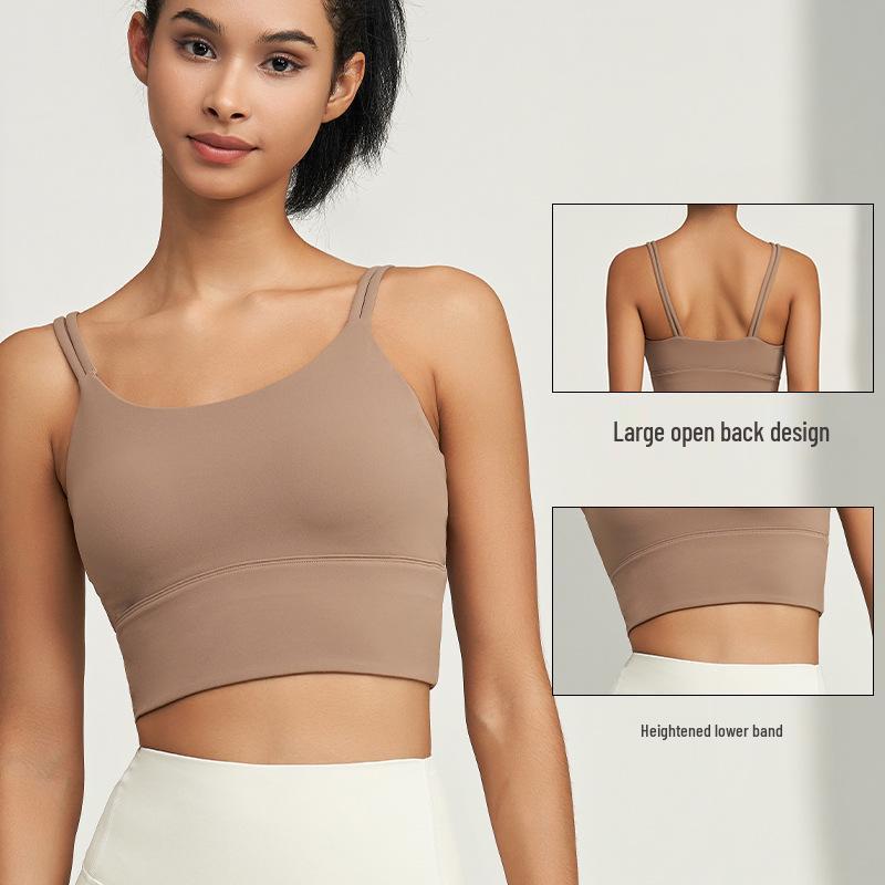 Европейско-американский топ-бра на двойных бретелях для йоги с фиксированными чашками