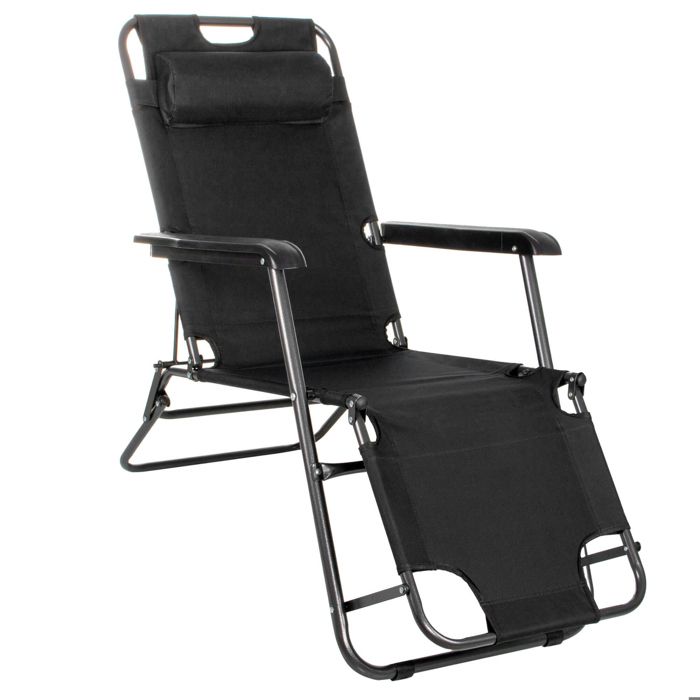 Transat de jardin - Springos® - Chaise longue pliante - Appui-tête - Accoudoirs - Noir