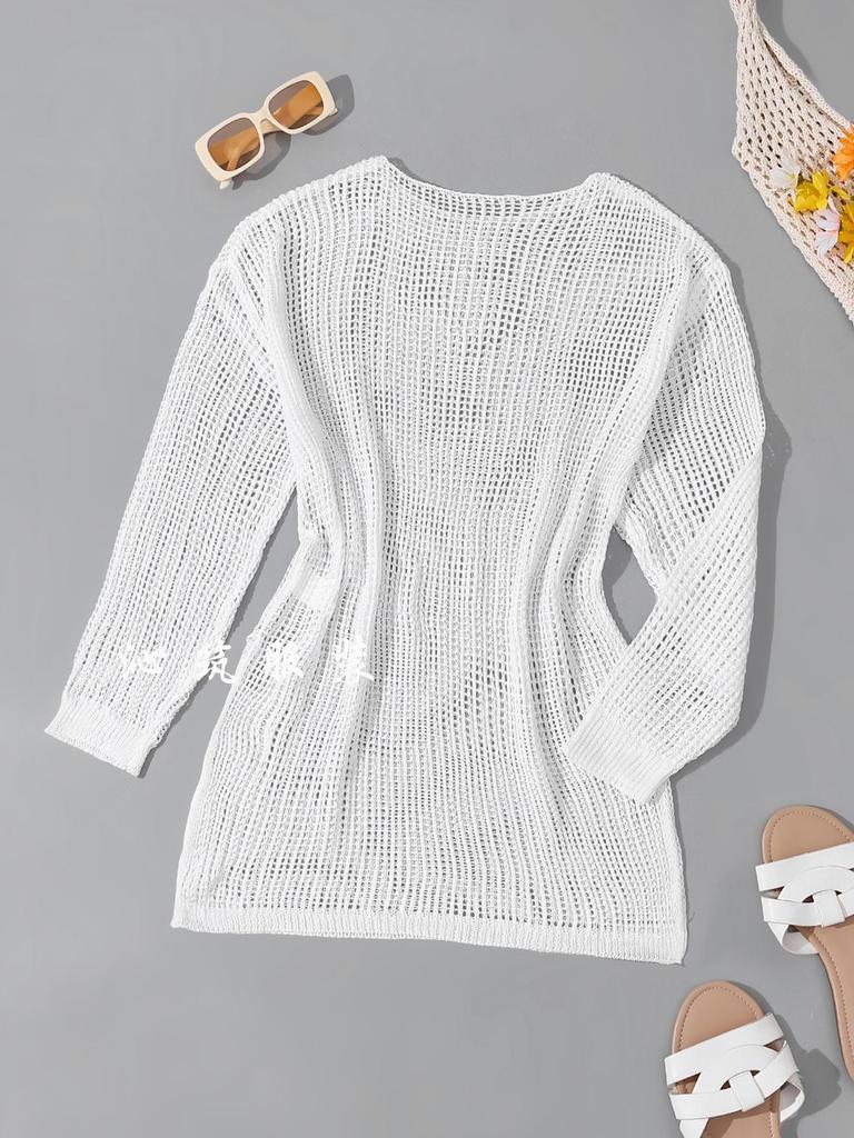Женская вязаная ажурная пляжная туника-рубашка для защиты от солнца 2024
