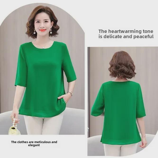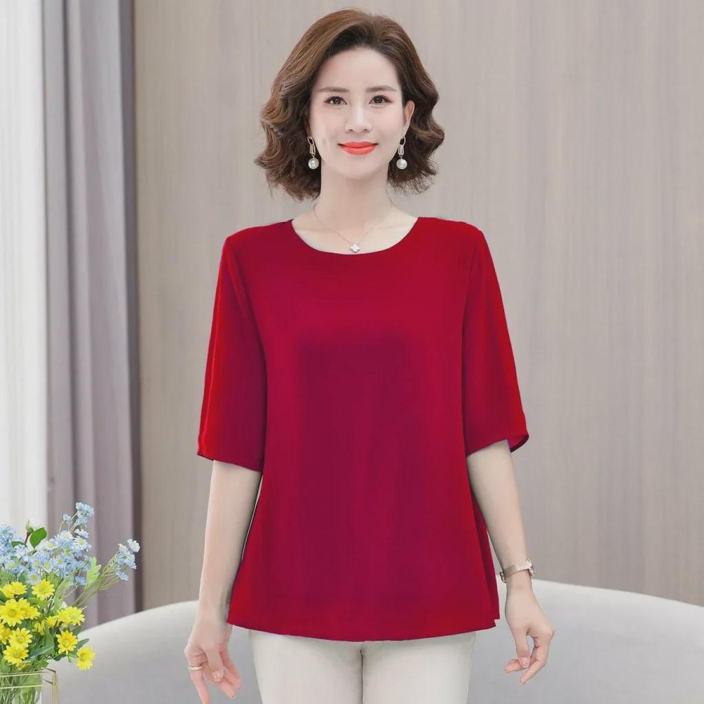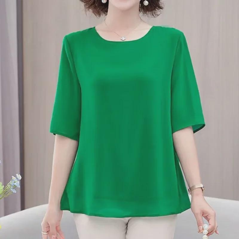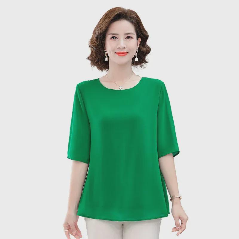 Этот элегантный шифоновый топ разработан специально для женщин среднего возраста, предлагая удобную и стильную свободную посадку.. Изготовлено из высококачественного шифонового материала, имеет однотонный узор, который добавляет нотку изысканности любому наряду.. Топ выполнен с рукавами до локтя и классическим круглым вырезом горловины, создающим лестный и изящный силуэт.. Доступный в больших размерах, он обеспечивает идеальную и удобную посадку для каждого, кто его носит.. Этот универсальный предмет идеально подходит для повседневных выходов, сочетая комфорт с непринужденным стилем.
